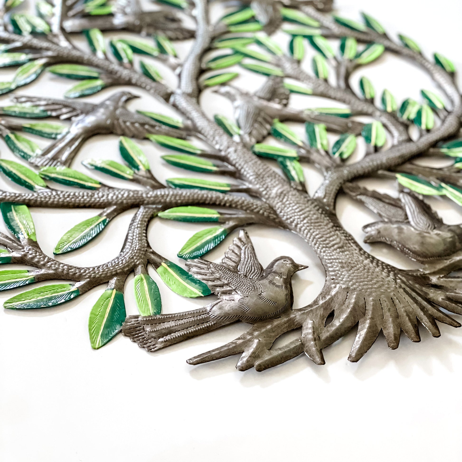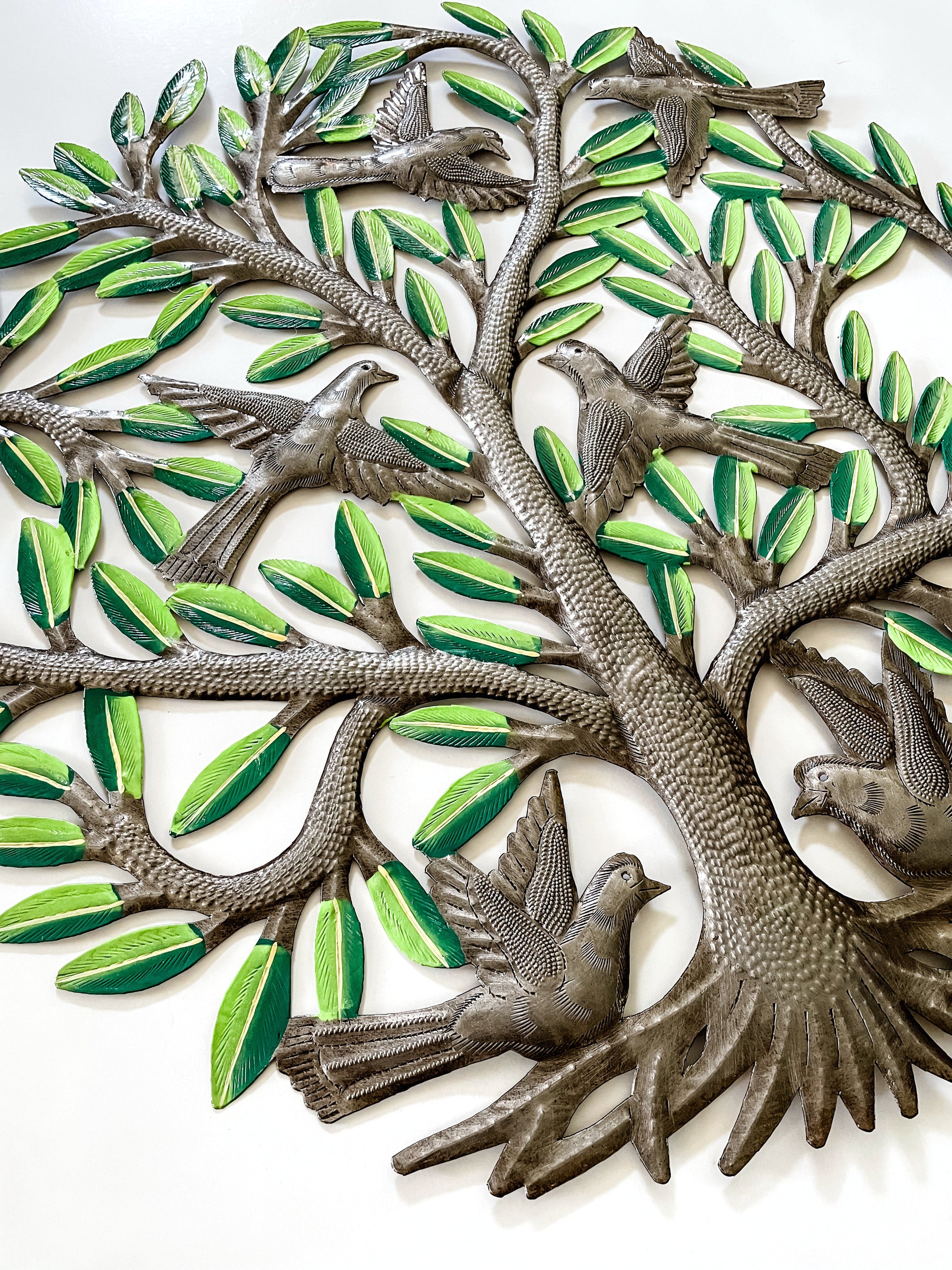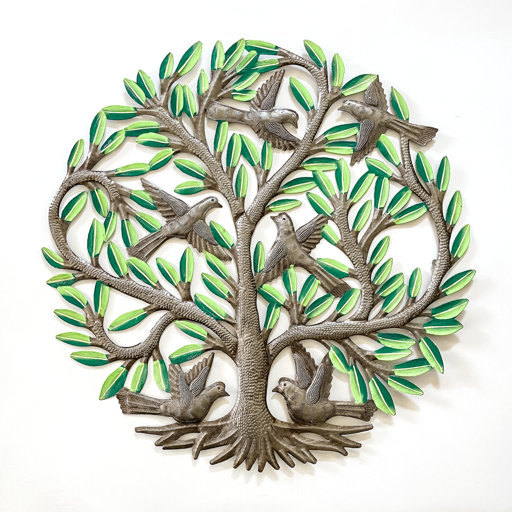 Discover the beauty of nature with this Birds at Home Oil Drum Art! This one-of-a-kind, hand-painted wall art is crafted from recycled 55-gallon oil drums, adding a unique, captivating touch to your home décor. Bring the outdoors inside with a design that's sure to wow!