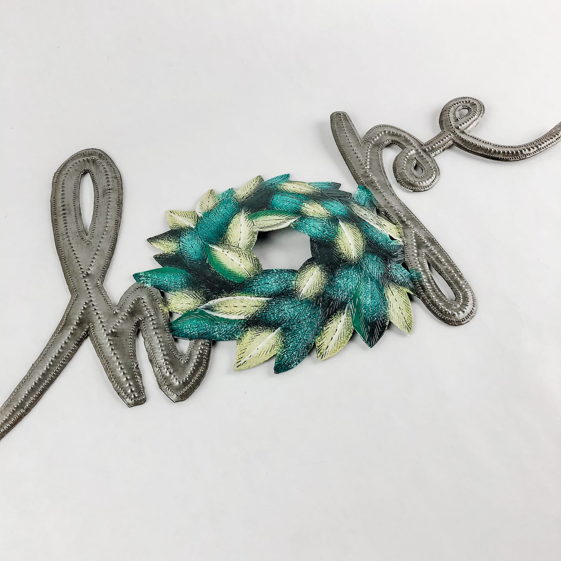Faith, hope and love. Bring a message of hope to your home with this beautifully crafted metal wall art. Handmade by metal artisans at Anchored in Hope in Haiti, this work of art makes the perfect addition to your holiday decor!