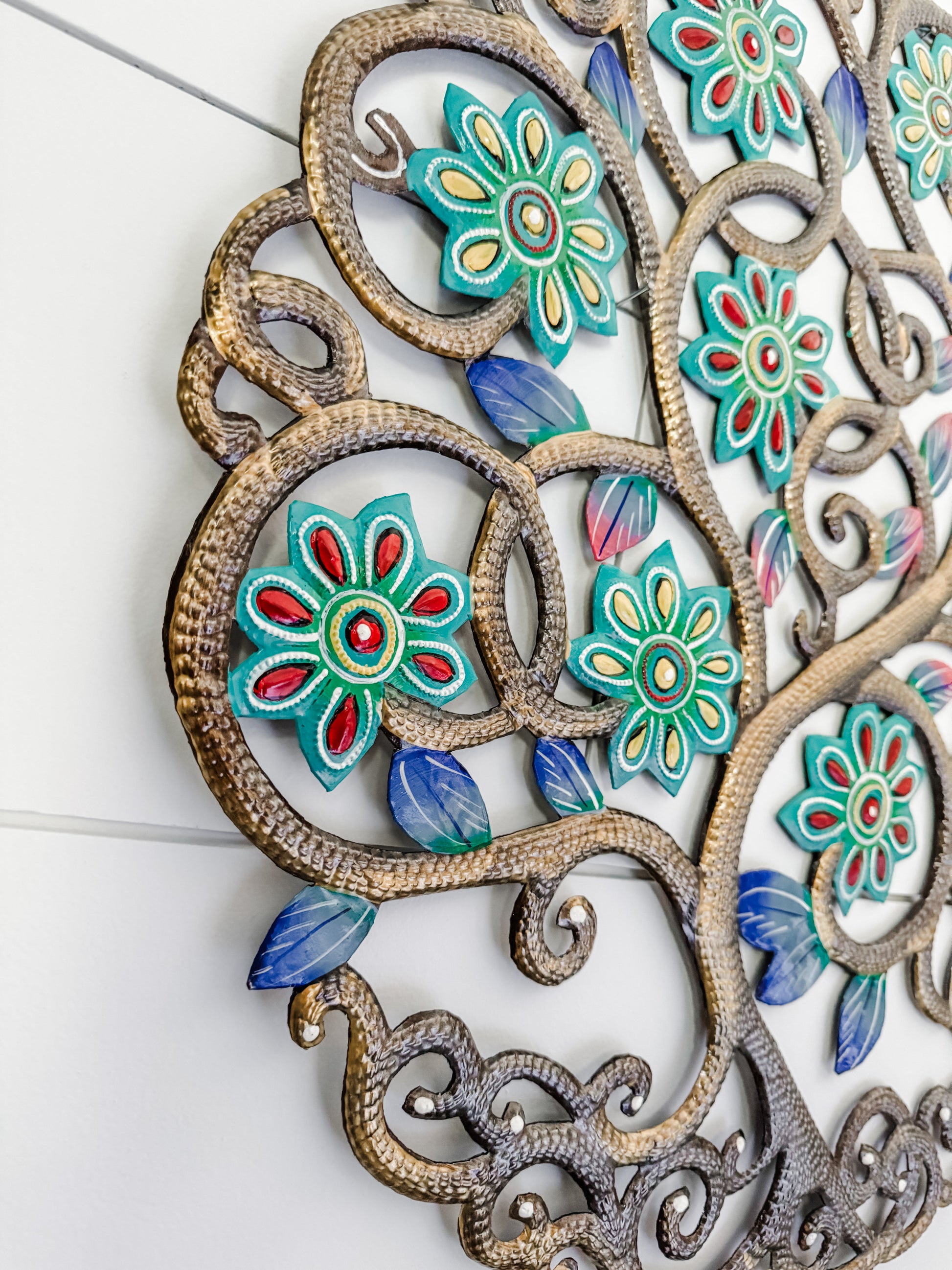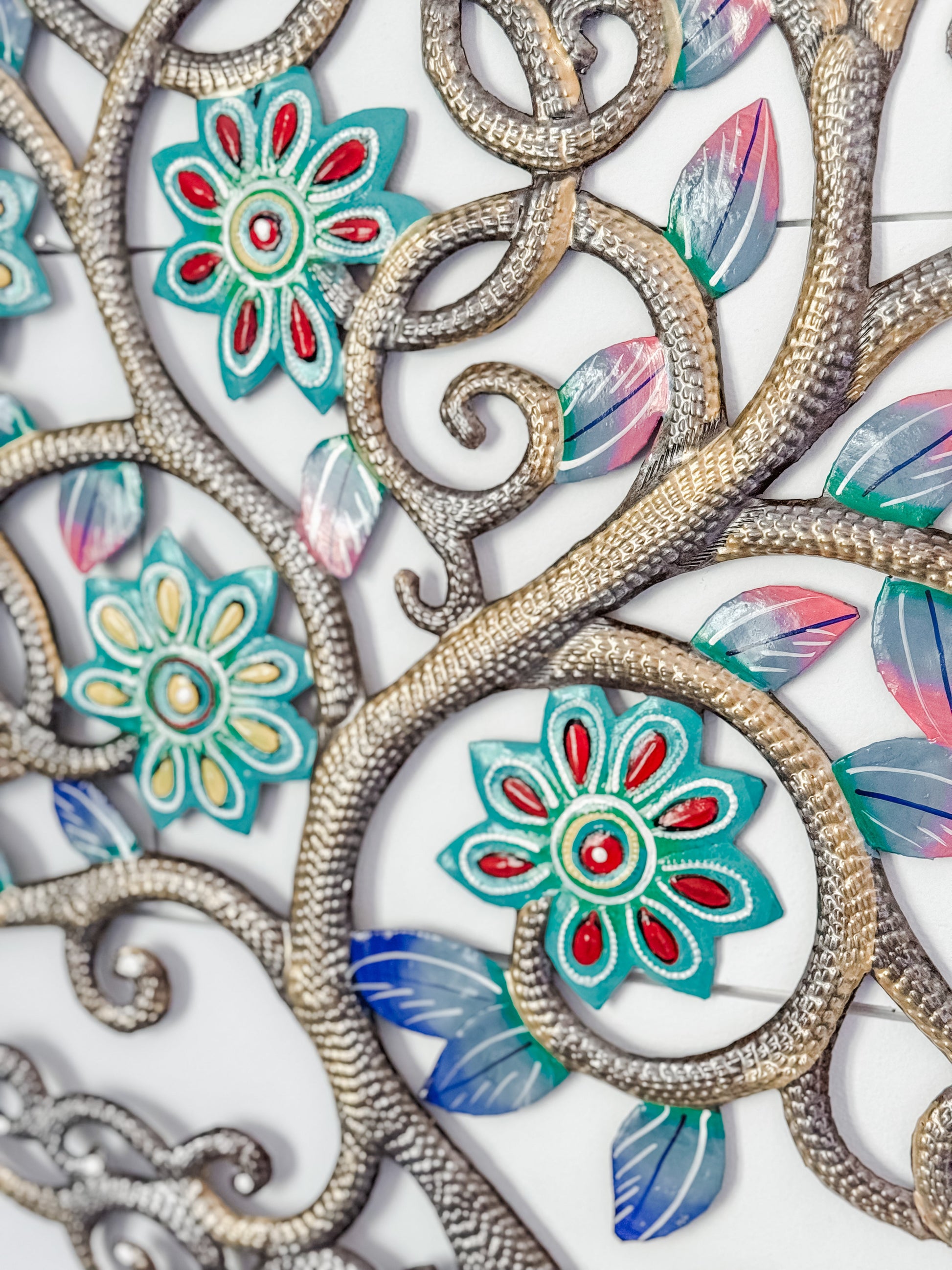 This Kaleidoscope Tree Oil Drum Art is a stunning work of art handcrafted with intricate details and hand-painting. Display it in your home or office to add a touch of unique beauty and support local artisans. Each piece is one-of-a-kind, making it a truly special addition to any space.