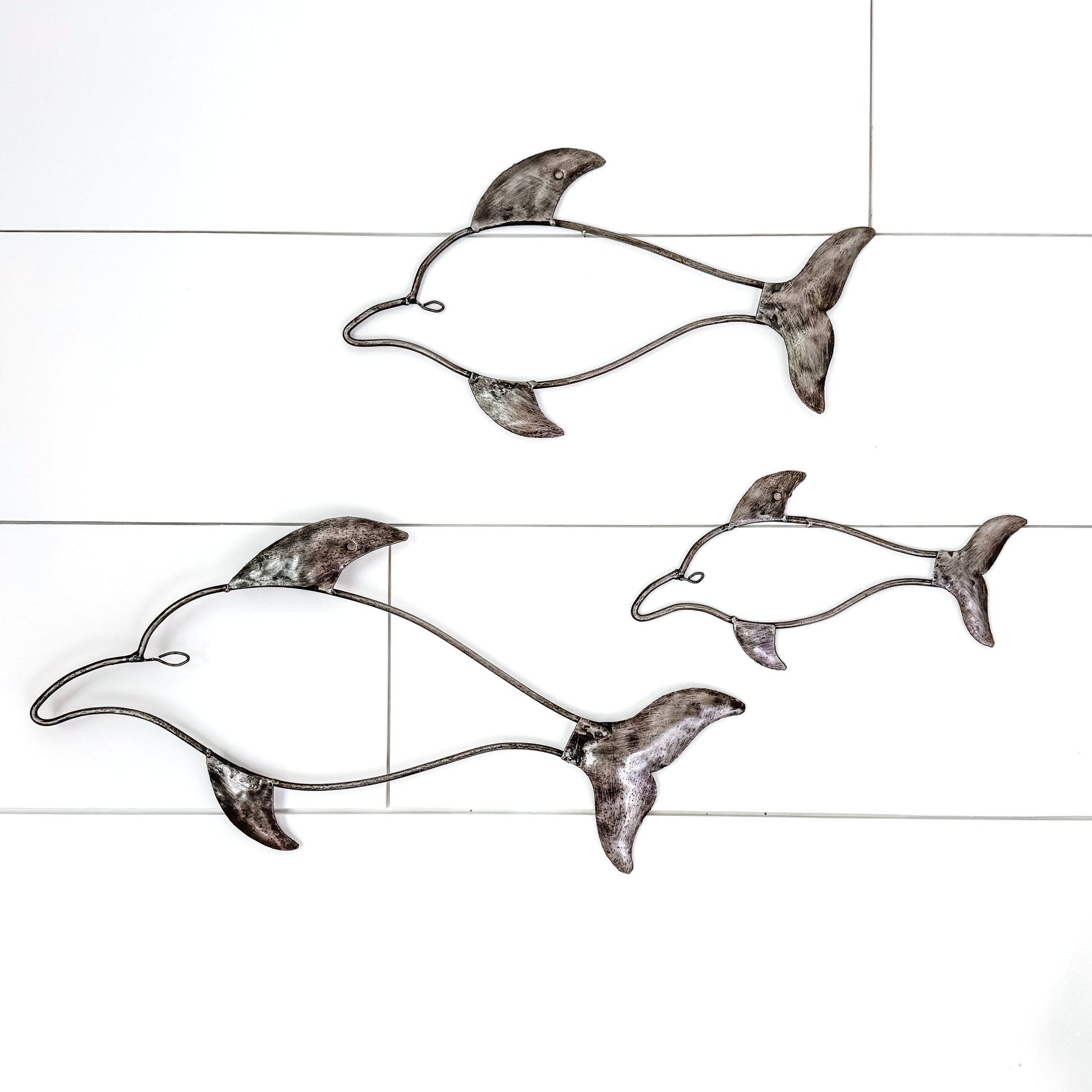 Handcrafted by skilled artisans in Haiti, these beautiful Wall Dolphins bring a touch of the tropics to any room. Made with care and attention to detail, each piece is unique and adds a fun and playful element to your home decor. Bring the vibrant spirit of the islands into your living space with these stunning wall dolphins.